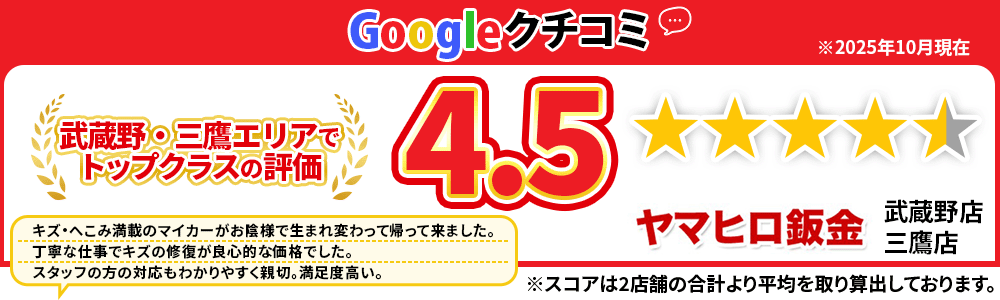お車の傷修理をお考えのお客様は、是非、三鷹店・武蔵野店にお任せください!